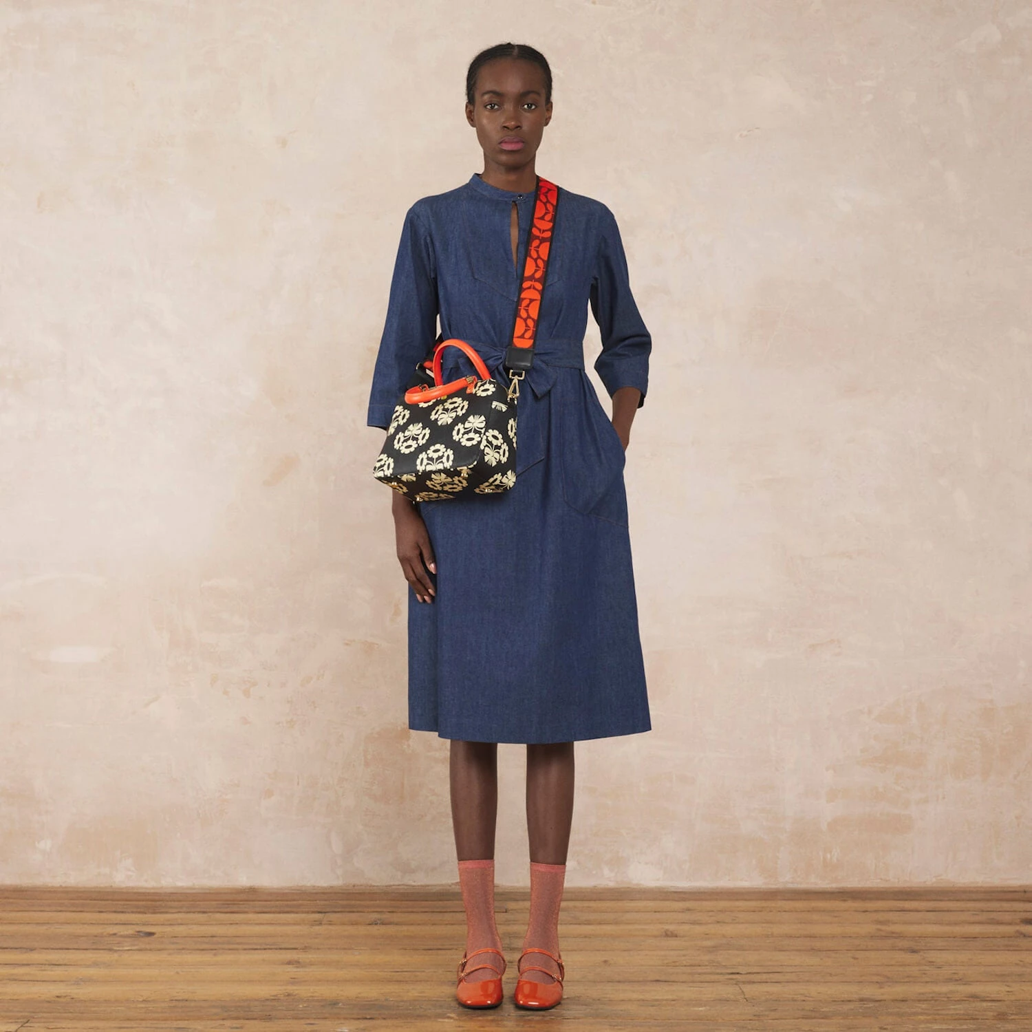Like its name suggests, The Block Bag has a sophisticated boxy shape, giving an easy luxurious look but without compromising on functionality. Carry it by hand with the contrasting leather handles or use the detachable webbing strap to go handsfree. Made in our sophisticated Barkcloth fabric, adorned with gold-coloured hardware and leather trims, the Block Handbag is a new team favourite.
