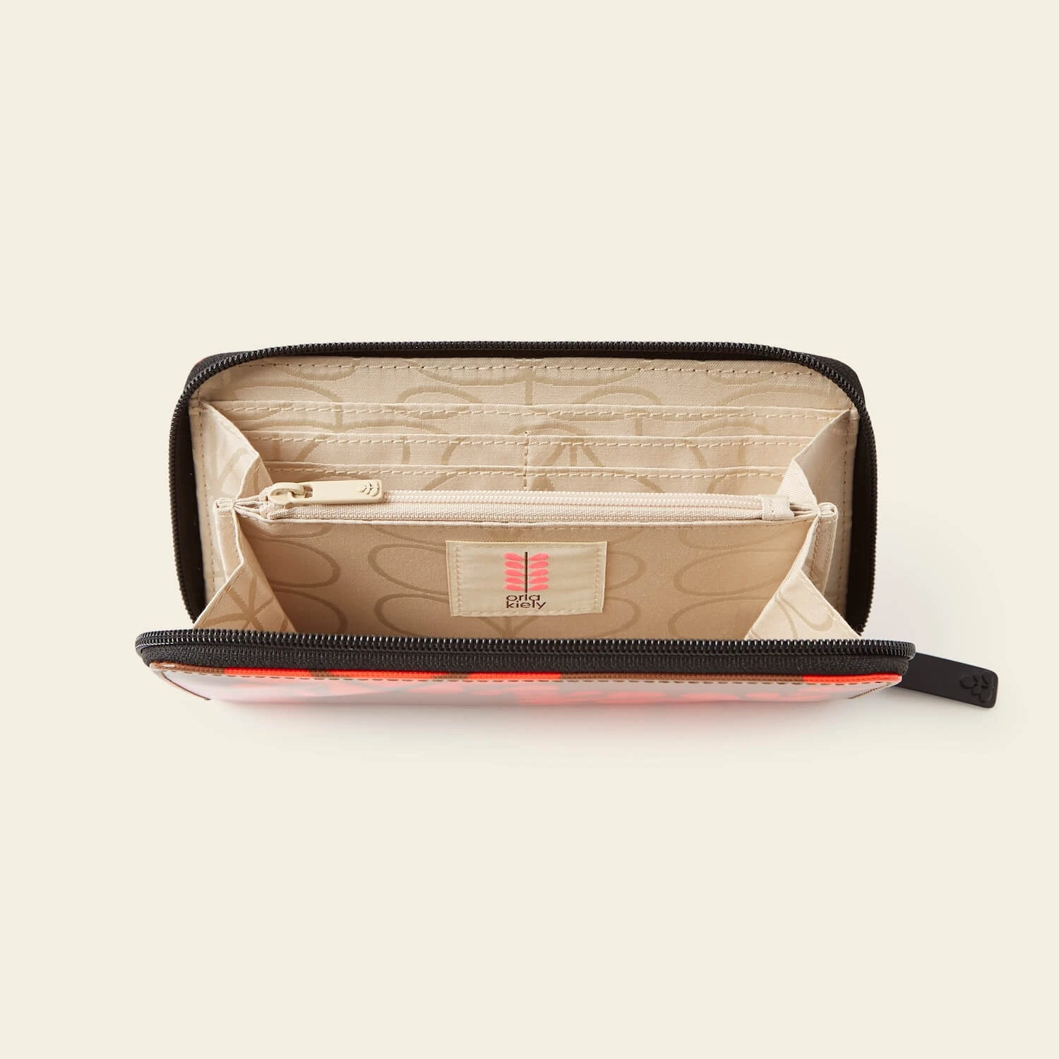 - Internal zip pocket divider, twelve card slots, two long slip pockets (for notes & receipts)