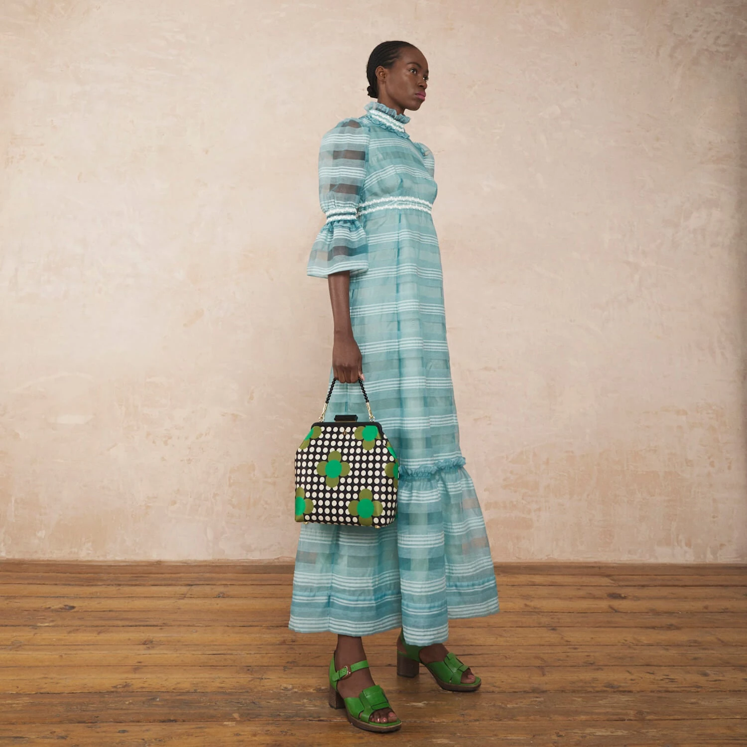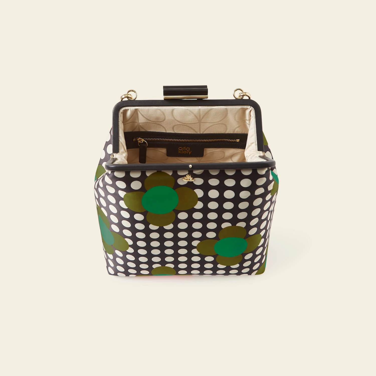 A luxurious satin style, brand new in for SS24, the Jenny D Handbag is one of our customer favourites. Choose between a fine black leather shoulder strap, or a black beaded handle to hold on the elbow or in your hand. The smart frame closure finishes off this retro-inspired handbag for those that love a bit of vintage.