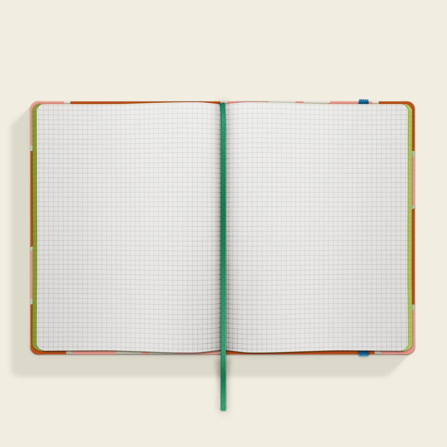 Write down your goals, plans and your weekly shopping list in style with our Block Tulip notebook. This notebook has a hardcover with rounded corners, an elastic closure and matching ribbon bookmark. Comes with a grid square paper layout and expandable inner back pocket.