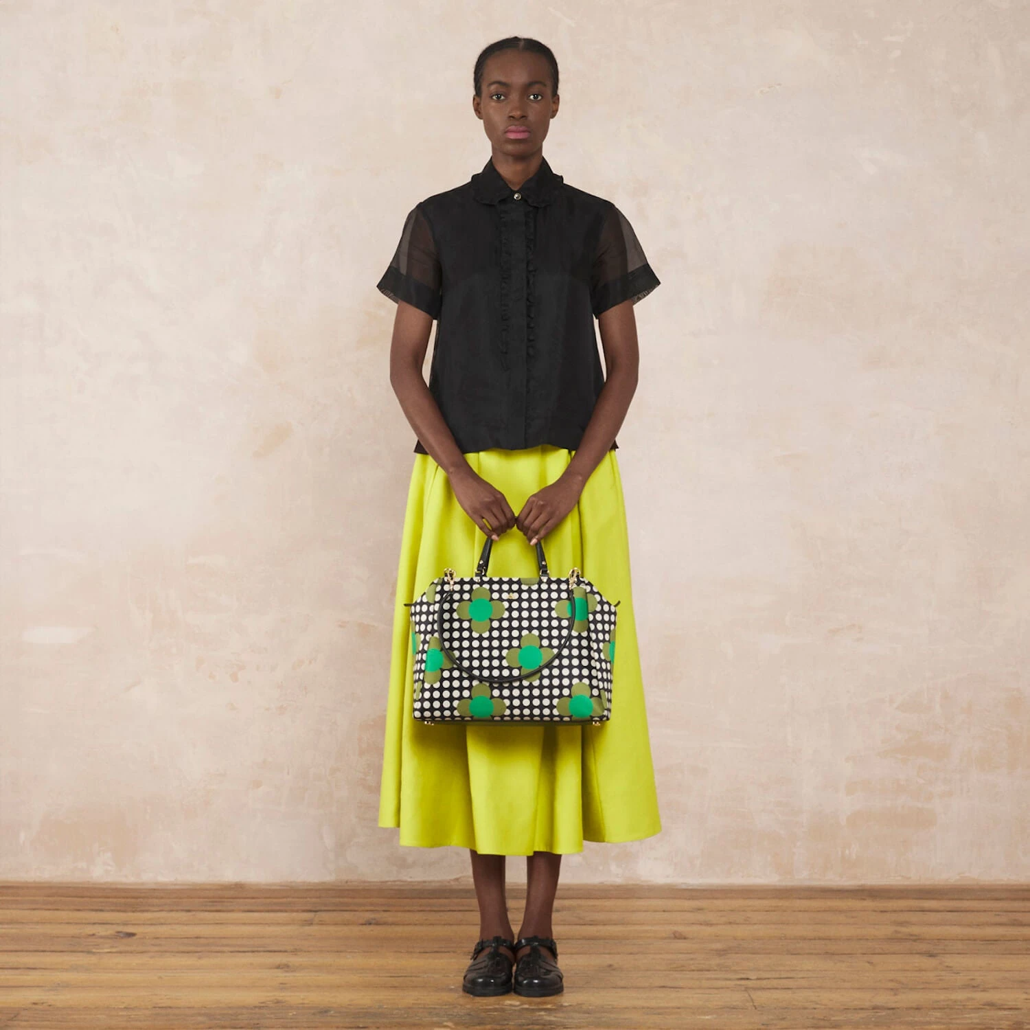 Introducing the Opera Big Tote, a meticulously crafted bag boasting a spacious design and luxurious satin fabric for an unparalleled touch of sophistication. Adorned with gold hardware and featuring smooth leather grab handles, the Opera Big Tote elevates any ensemble with an elegant flair. Additionally, the Opera Big Tote features two removable black leather shoulder straps, making it the perfect companion for those on-the-go occasions. Seamlessly blending sophistication with practicality, the Opera Big Tote is a must-have.