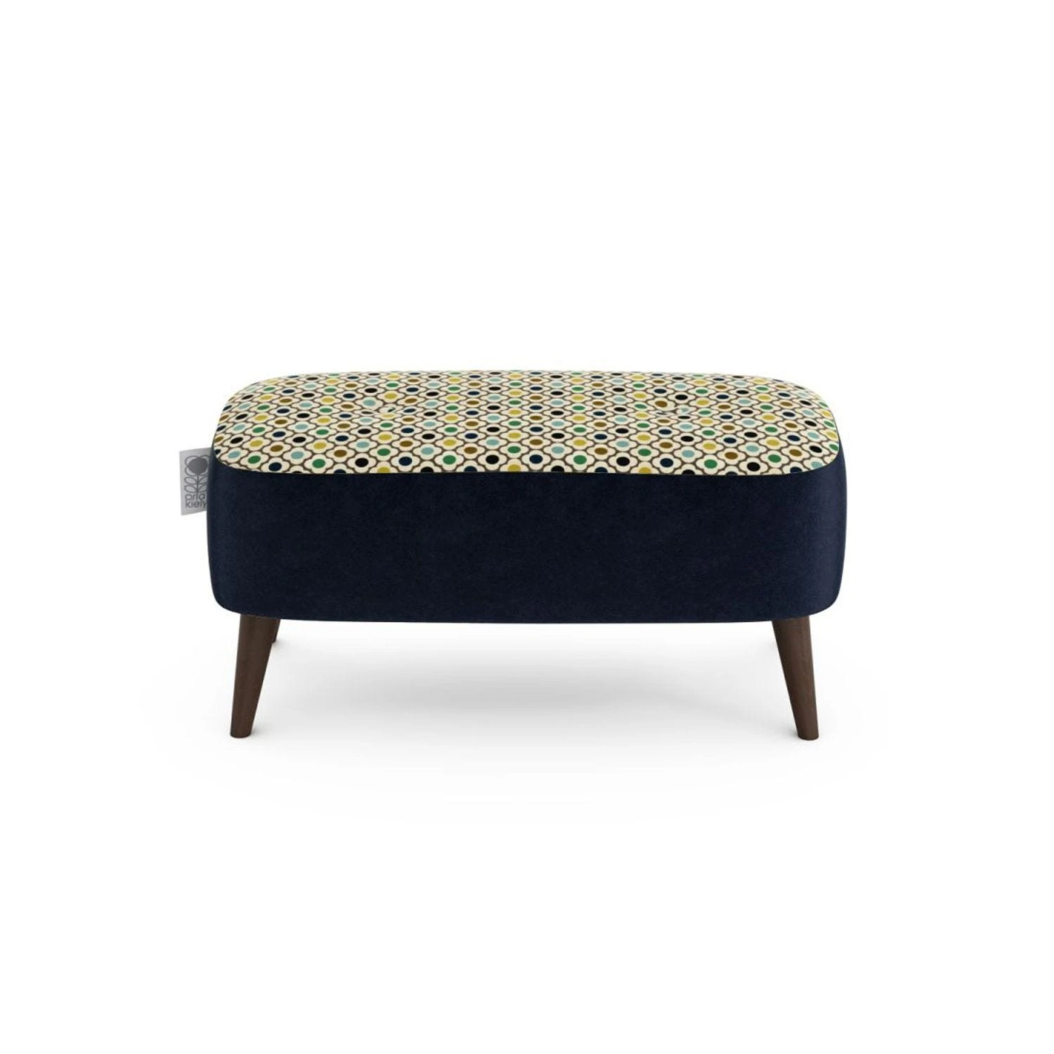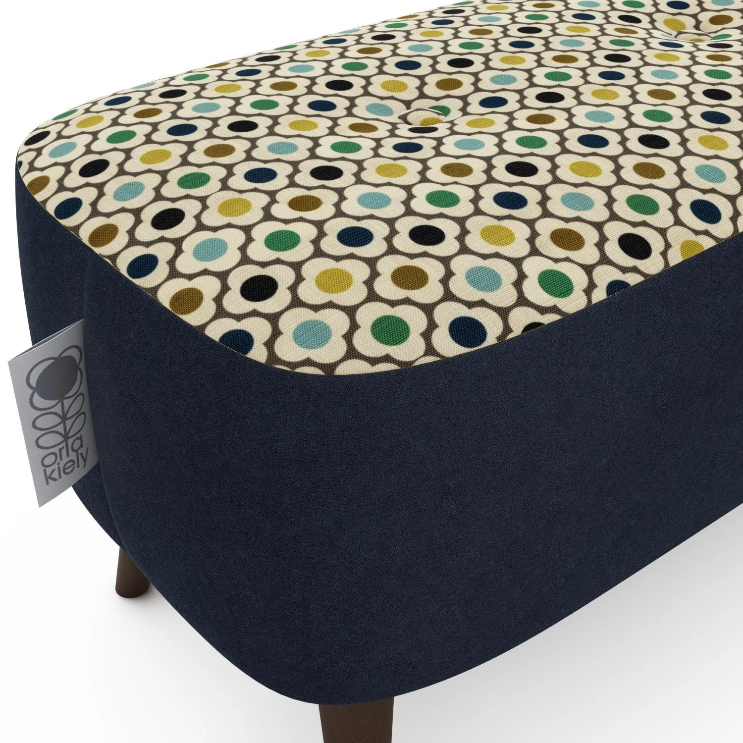 An effortless way to introduce retro style to any space, the Orla Kiely Donegal small velvet footstool features slim splayed legs, a curved silhouette and classic button detailing to its fabric. The perfect combination of contemporary design and mid-century influence, its patterned sides bring fresh and fun appeal, whilst a foam top provides just the right amount of comfort. As pleasant to admire as it is to rest your feet upon, the Donegal will sit proudly beside your favourite lounging spot. Handmade to order in the UK, all Orla Kiely pieces include a manufacturer warranty of 12 months, plus a 10 year construction guarantee against defective workmanship.