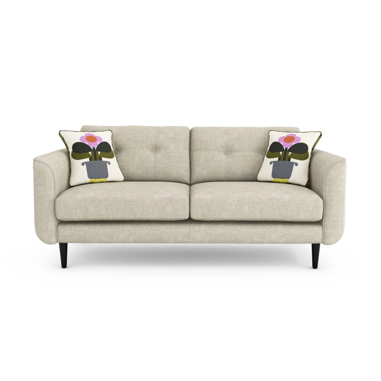 Lifted off the ground on slim tapered legs, the Orla Kiely 2.5 seater medium fabric sofa maximises space and creates a sense of lightness in any room. Elegant button detailing beautifully contrasts with the bold print choices of the scatter cushions, creating a mid-century modern appeal. Pretty, plump and playful, it is sure to enliven any living area. Built with comfort in mind, the seats and back cushions boast foam and fibre filling, whilst gently curving armrests ensure a snug sit in any position. Handmade to order in the UK, all Orla Kiely pieces include a manufacturer warranty of 12 months plus a 10 year frame and construction guarantee.*