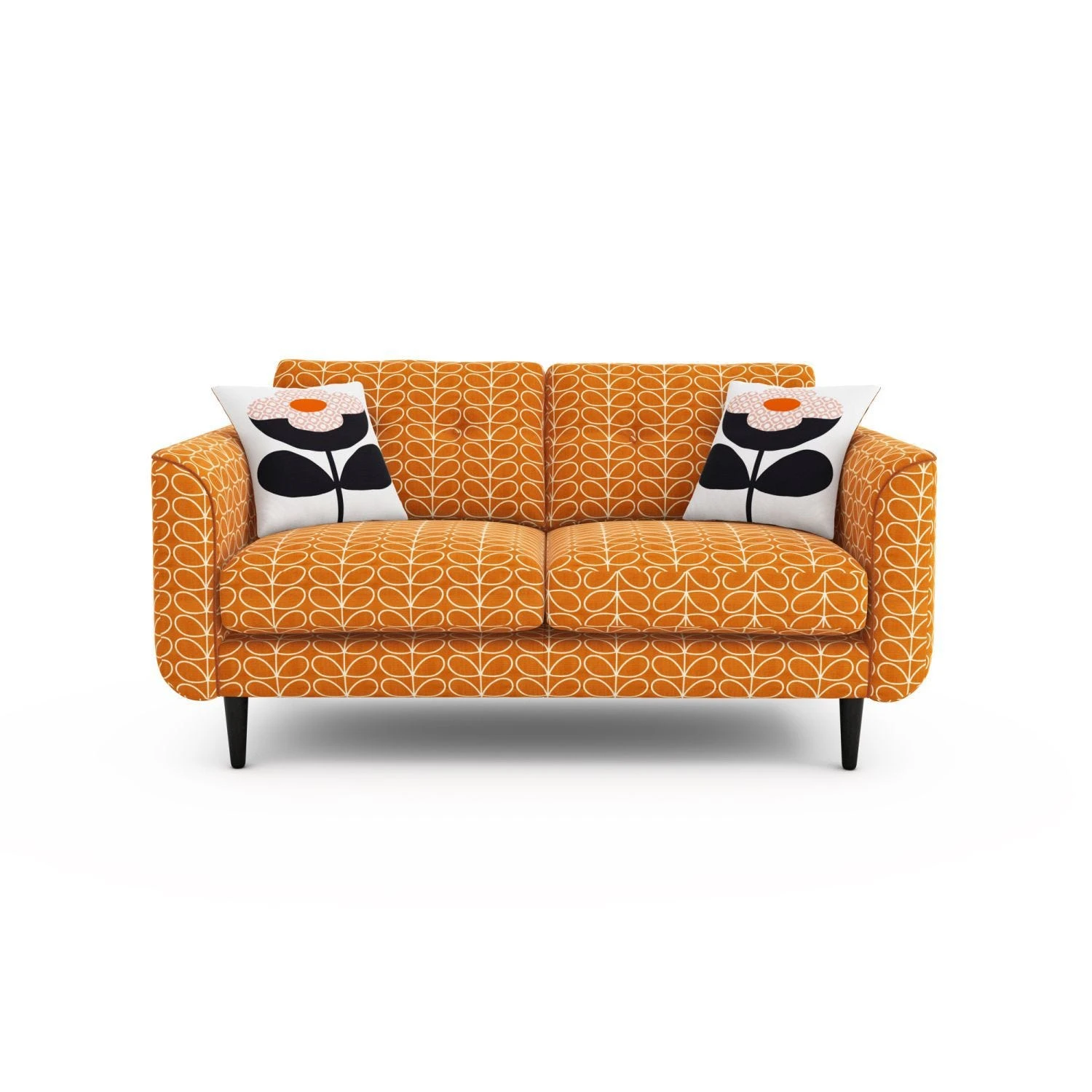 Introduce a touch of elegance and retro charm to your home with the Orla Kiely Linden small 2 seater pattern fabric sofa. Comfortable and classically stylish with a pop of playful pattern. A simple yet graceful design, it features gently curved armrests, button back detailing and slim raised legs that maximise space. The complementary scatter cushions are detailed with your choice of iconic prints, bringing the look together and providing a stunning signature feel. Thriving in both classic and contemporary environments, the Linden benefits from quality foam and fibre filling, making it ideal for those long lazy days. Handmade to order in the UK, all Orla Kiely pieces include a manufacturer warranty of 12 months plus a 10 year frame and construction guarantee.*