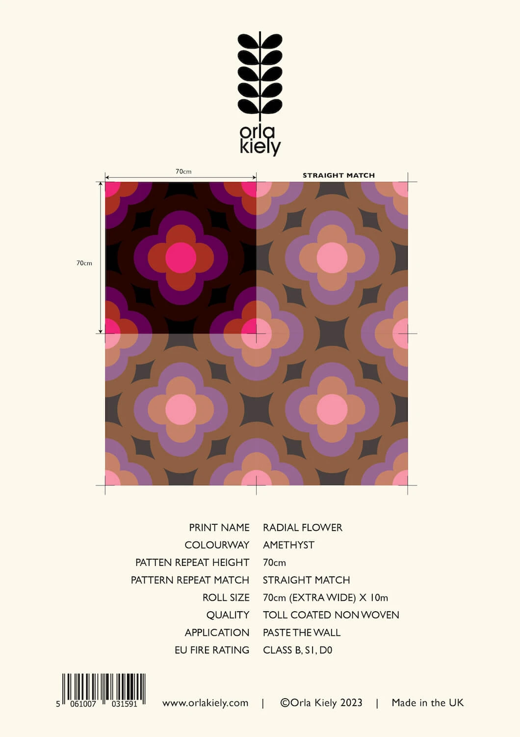 The Radial Flower print is a nod to the vibrant and eclectic prints from the 1960s, featuring warm and inviting colours of pinks, purples and reds, this print exudes a sense of nostalgia whilst remaining fresh and modern.